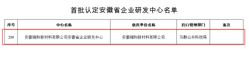 | 喜报|瑞和公司成功通过首批安徽省企业研发中心认定 | |